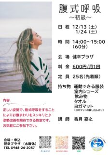 2025年12/13(土)より健幸プラザにて再開の教室のお知らせです。