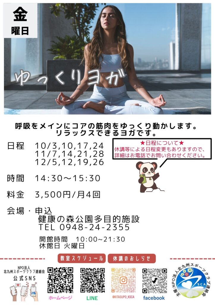 持ってくるもの 水筒、汗拭きタオル、ヨガマット