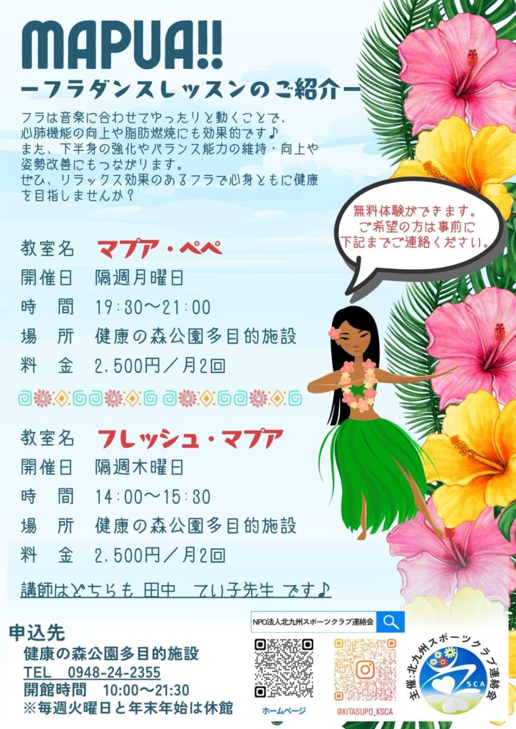 健康の森公園よりフラダンス教室を2つご紹介いたします。