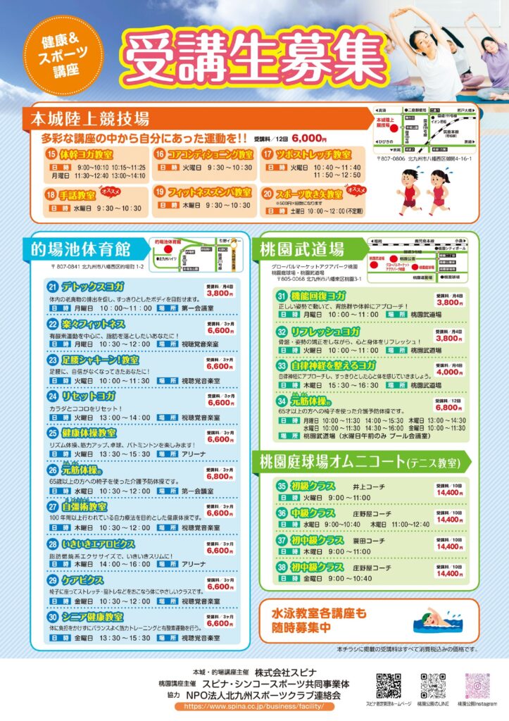 参加できる教室がたくさんあります。