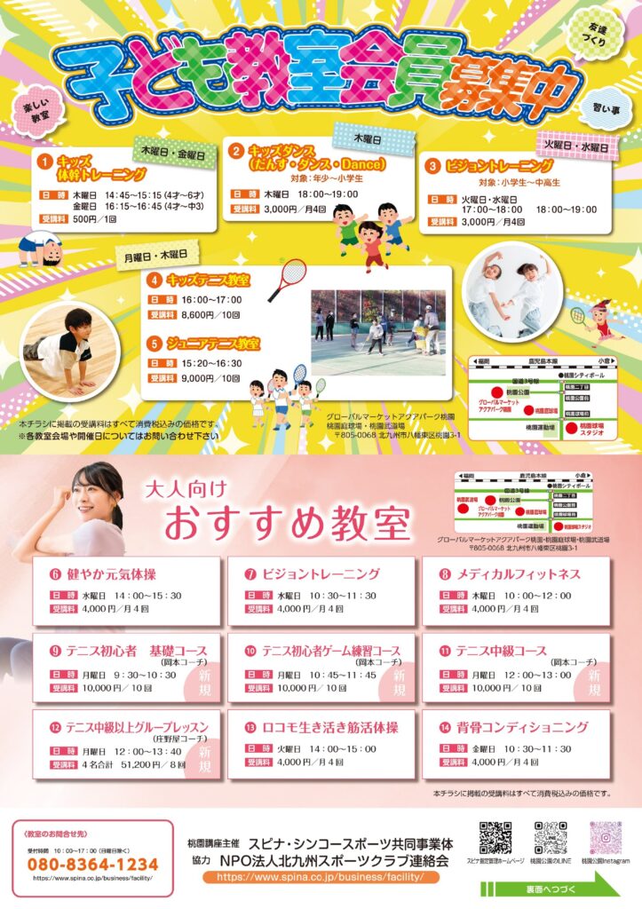教室が気になる方、またどんなお問合せも桃園スポーツ施設管理事務所