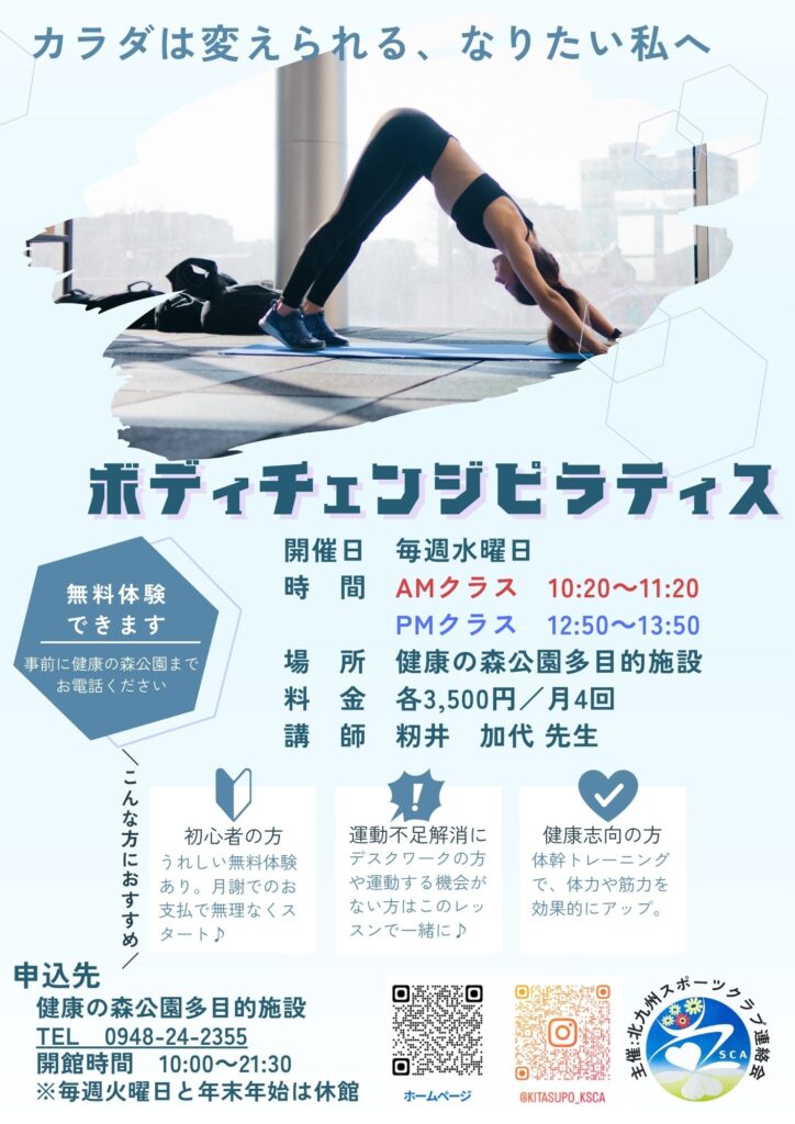 健康の森公園よりボディチェンジピラティスの教室をご紹介いたします。